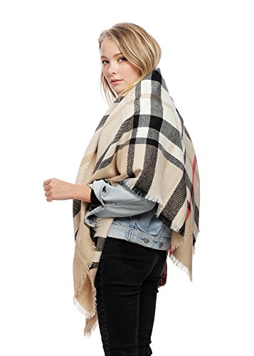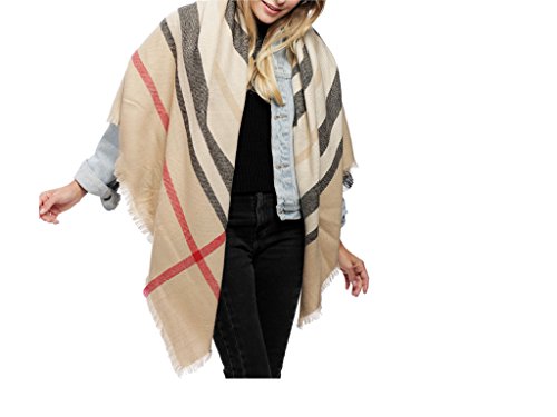 ePretty Women's Plaid Stripe Pattern Design Square Blanket Winter Scarf