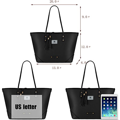 -. Feature : Great Material: High Quality Imported Synthetic Vegan Leather. Soft Touch And Without Bad Odor / Multi-functional Design: 1 large tote bag and 1 detachable single shoulder/crossbody bag. Crossbody bag can be put in the Tote Bag. You can use the cross-body bag alone / Vintage Flair: Delicate tassels make it look more stylish / Large Size: Tote Bag: 13"(L) x 6"(W) x 12"(H). Tote Bag strap length: 9". Cross-Body Bag: 14" (L) x 4"(W) x 10"(H). Cross-Body Bag strap drop length: 25.5" / MULTI FUCTIONAL: Can fits perfectly for 9.7"iPad, 10"laptop or smaller. Can comfortably hold your phone, wallet, cosmetic, umbrella and other things