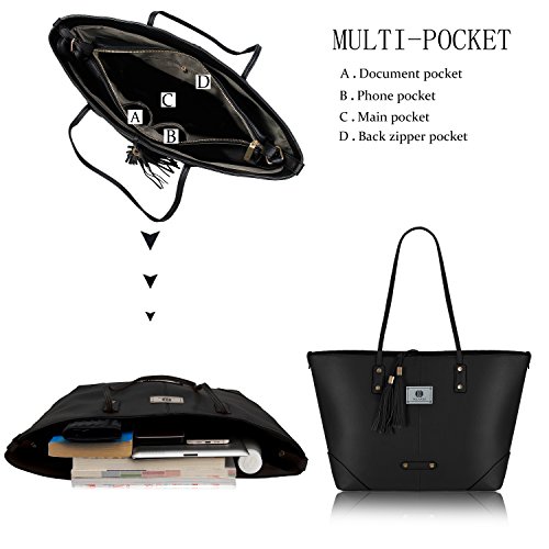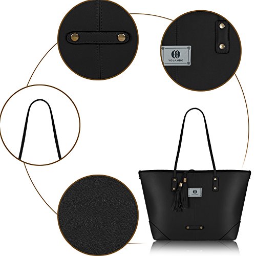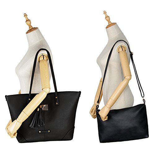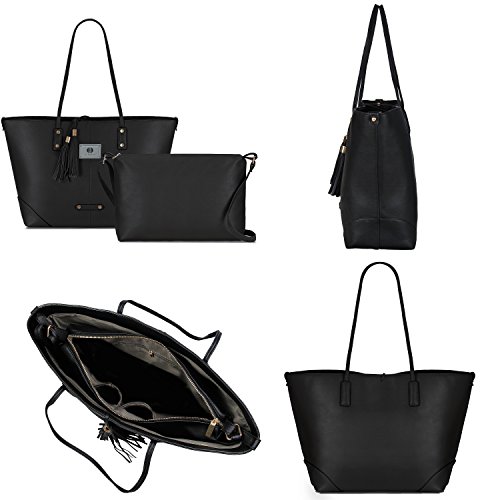 -. Title : Women Faux Leather 2 in 1 Tote Shoulder Bag Set, Tassels Everyday Handbags and Detachable Casual Roomy Daily Work Crossbody Bag