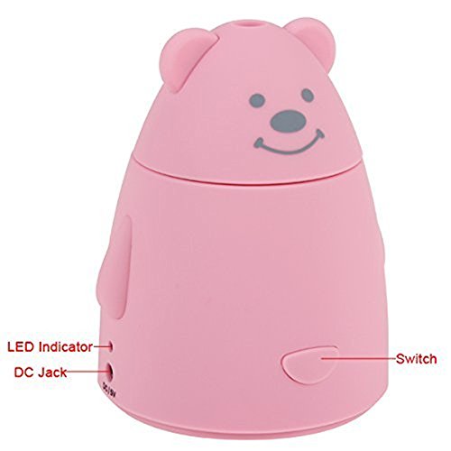 Happy-top® Cute Bear Shape Portable USB Mini 80ML Humidifier Air Diffuser Aroma Mist Maker Absorbent Filter Sticks for Home Room Office and Car (Pink)