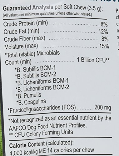 Proflora veterinary-strength probiotic soft chews for dogs help support digestion and overall canine health. For daily use. Proflora helps maintain a healthy probiotic balance in the digestive system. Use Proflora to re-balance the flora population in your dog's gut. Contains 9 strains of microorganisms and 1 billion CFUs per dose.Feature
