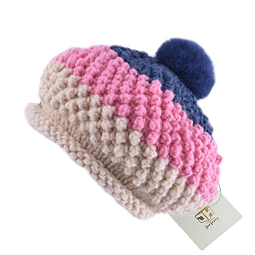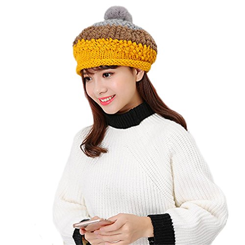 (Camille-Chen)/Accessories/Hats/DIRECT FROM USA/Knitted Berets For Women Crochet Beret Cap Cute Rabbit Real Fur Pom Pom Hat