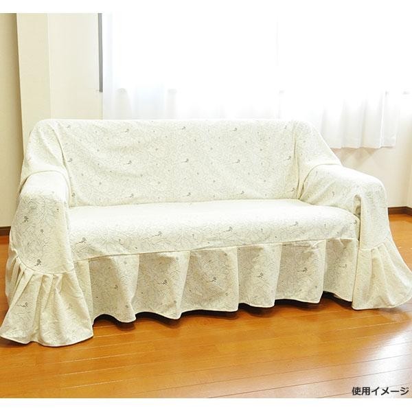 綿混素材で編み上げた総柄ジャガードレースは、肌触りが良く、上品な花柄を表現しています。4方向にフリルをあしらい、優雅で高級感のあるデザインです。ソファカバーやベッドカバー、その他に様々な用途でご使用いただけます。 |