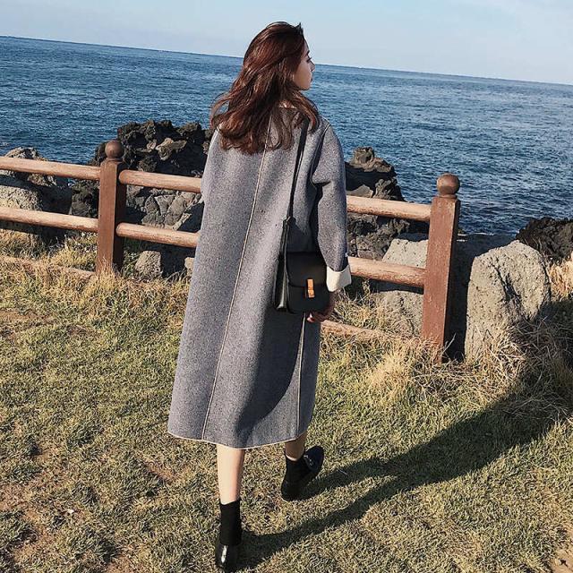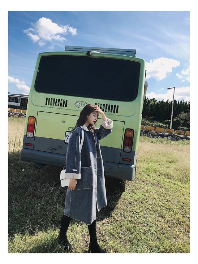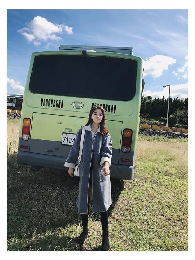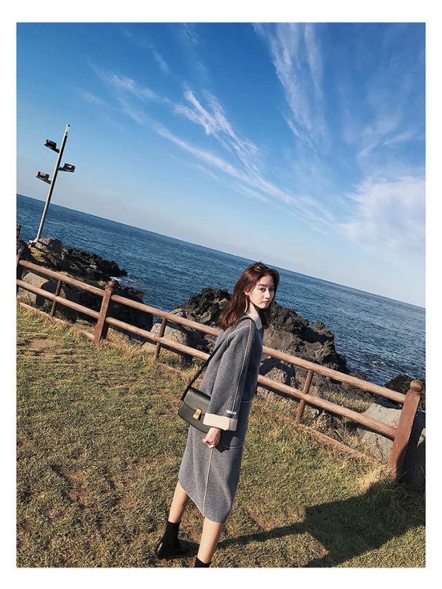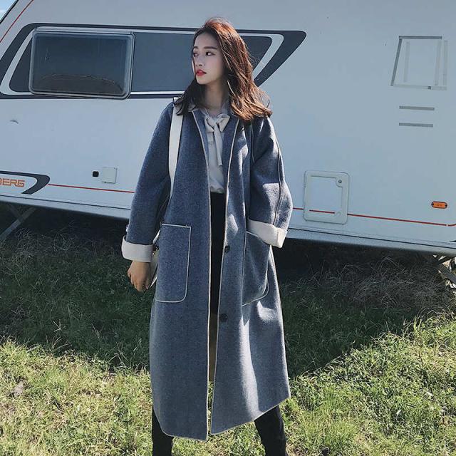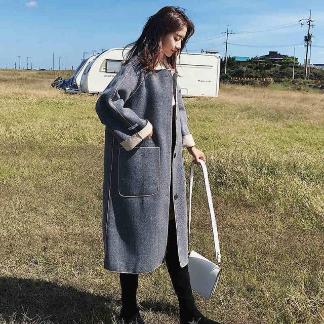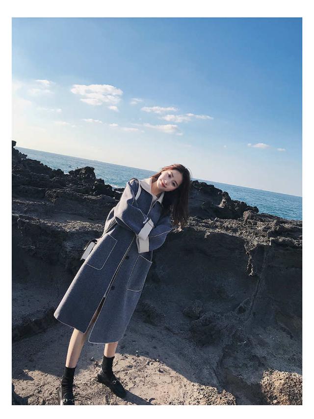 トレンド シンプル ロング丈 ガウンコート ブルー スタイリッシュ 秋冬 上品 エレガント S M L