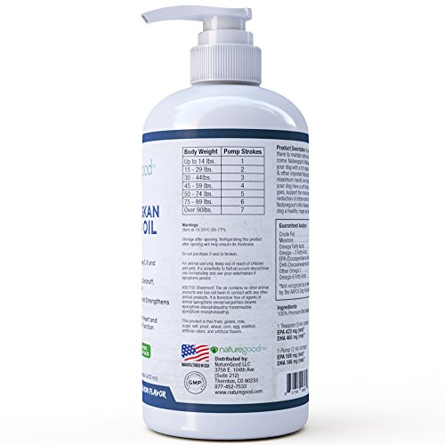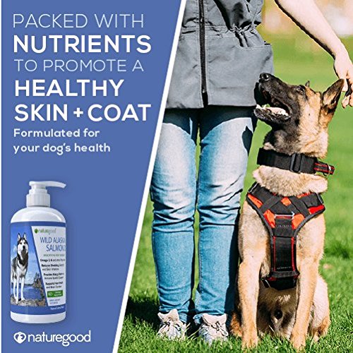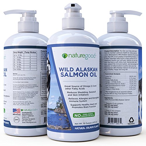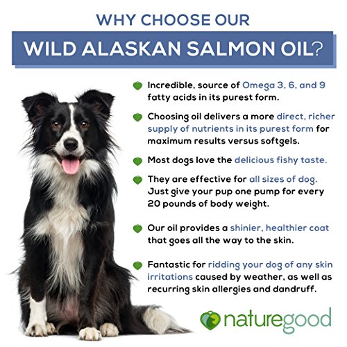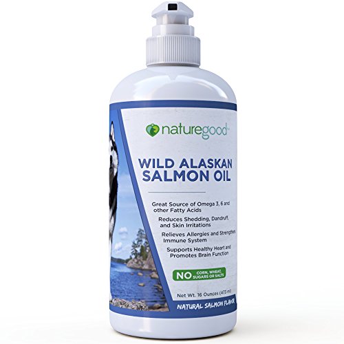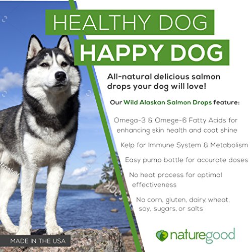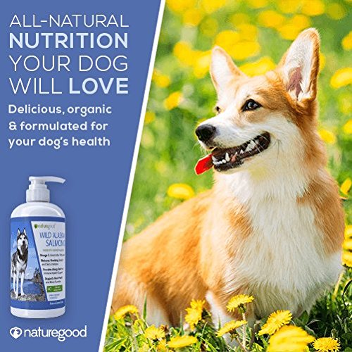 NatureGood's 100% Pure Wild Alaskan Salmon Oil: You love your dog, and want them to maintain optimum health for many years to come. Naturegood's Wild Alaskan Salmon Oil provides your dog with a rich supply of nourishing Omega 3, 6 & other important fatty acids in their purest form for maximum results over soft gels. Salmon oil can help your dog have a soft-shiny coat, improve skin allergies, encourages the reduction of inflammation in joints, supports the immune system and has even been used to fight heart disease and cancer. Give your dog Naturegood's Wild Alaskan Salmon Oil and give your dog a healthy, happy and long life!
