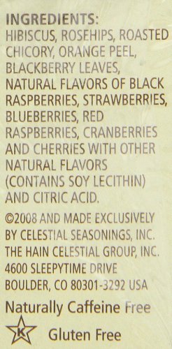 -. Feature : Case of six boxes, each box containing 20 tea bags (total of 120 tea bags) / Blend of hibiscus and rosehips with natural flavors including cranberry and strawberry / Naturally caffeine-free; contains all-natural ingredients / Packaging features whimsical original artwork; stringless teabags help reduce waste / Ships in Certified Frustration-Free Packaging