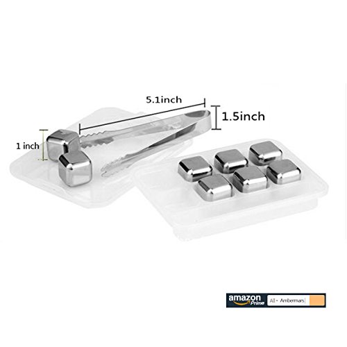 -. Brand : Ambermars -. Feature : Made from 304 stainless steel,not only durable & reusable and safety,but also easy to wash and clean. / Easy&convenient to use:put the stainless steel whisky stones into refrigerator cooling 2-3 hours,then take out to use(you can also store it in the refrigerator again,for second use at any time . / Chill Your Wine While Retaining Its Flavor. Retains the Cold of Your Drink for a Longer Time Without Diluting Them. Note: These chilling cubes will not get your drink as cold as ice. But they sure do not dilute your drink either! / Includes Plastic Storage Box, Better Than Pouch for Frozen and Storage in Freezer, To Keep Them Clean and organized. / Best gift for spirit drinkers,best chilling ice cubes for whiskey. -. Label : Ambermars -. Manufacturer : Ambermars -. ProductGroup : Kitchen -. ProductTypeName : KITCHEN -. Publisher : Ambermars -. Studio : Ambermars -. Title : Stainless Steel Whiskey Stones - Ambermars Plastic Storage Box Tongs, Stainless Steel Reusable Wine Ice Cubes, Whiskey Chilling Rocks, Whisky Stones and Sipping Stones