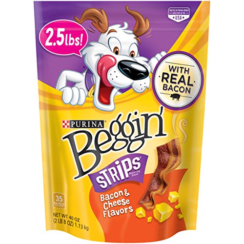 -. Title : Purina Beggin' Strips Bacon and Cheese Flavors Dog Snack, 40 oz. Pouch, 1 Pouch