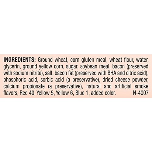 -. Feature : Features bacon flavor and aroma that dogs crave / Made with real bacon / Offers 15% protein in every serving / Tear it into smaller pieces for training or use as a reward just because / Combination of taste, texture, and aroma creates a multisensory experience