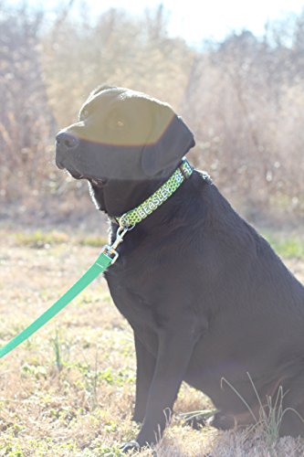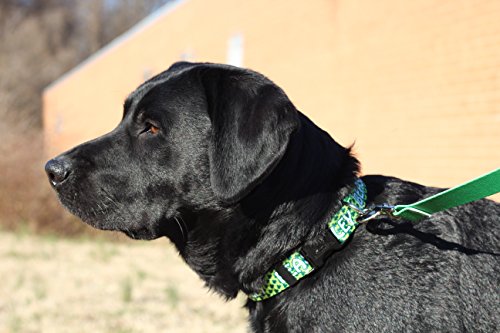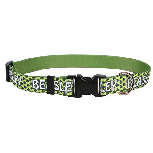 Studio : Yellow Dog Design Publisher : Yellow Dog Design Binding : Misc. Product Description This is a fully personalized Irish Shamrock Dog Collar from Yellow Dog Design, made right here in the USA. EASY ON EASY OFF - Using a quick release clasp, the collar can easily be taken on or off the dog. Don't worry though, opposable thumbs are necessary to activate the quick release. SIZING: This dog collar utilizes a quick clasp closure, also called a side release clasp. Sizing is given as a range of neck lengths. Measure your dogs neck size or its current collar length (not including buckles) to obtain correct sizing.Small (10" to 14" long x 3/4" wide). Medium 3/4" (14" to 20" long x 3/4" wide) Medium 1" (14" to 20" long x 1" wide). Large (18" to 28" long x 1"wide). To determine the size your dog needs, the easiest way is to measure their current collar. Whether your dog is true blood Irish Wolfhound, or just enjoys a little bit of personalized art in their fashion choices, this celtic themed pet collar is bound to put a bounce in their gait. If you think you've seen personalized dog collars before, you haven't seen these! No rough edges, no embroidered threads to fray or break, and no problem washing this one. So much better than an embroidered dog collar, give it a shot and we're confident you will agree 0