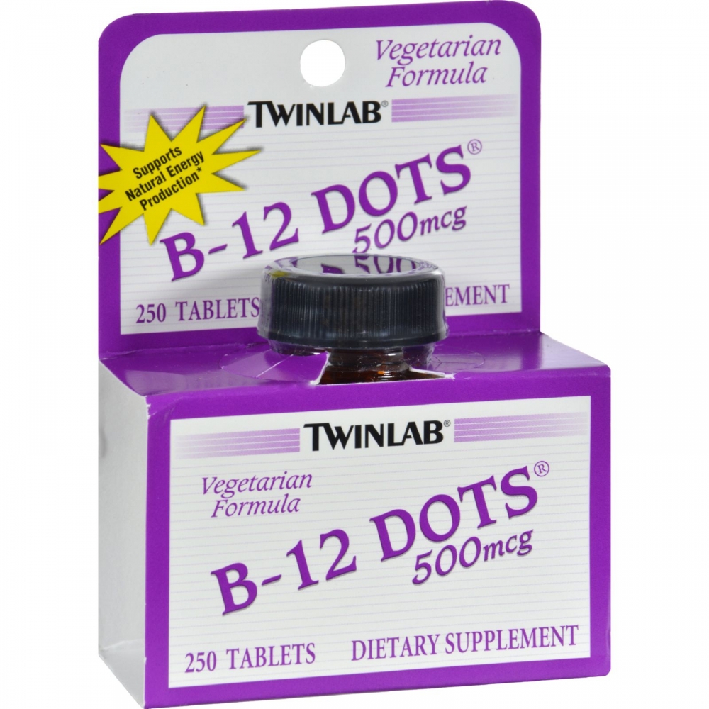 | Twinlab B-12 Sublingual Dots Description: Supports Natural Energy Production Vegetarian Formula Gluten Free