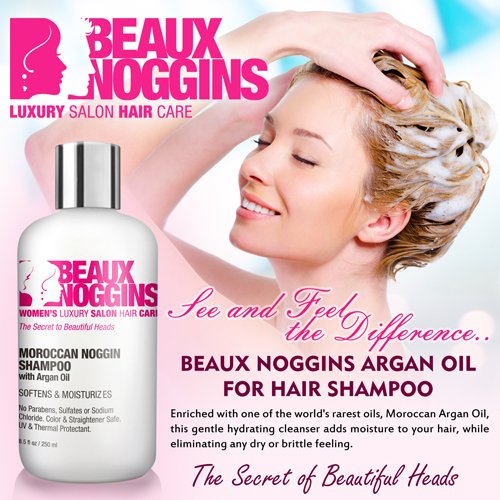 + SEE & FEEL THE DIFFERENCE WITH BEAUX NOGGINS ARGAN OIL FOR HAIR SHAMPOO--Enriched with one of the world's rarest oils, Moroccan Argan Oil, this gentle hydrating cleanser adds moisture to your hair, while eliminating any dry or brittle feeling.