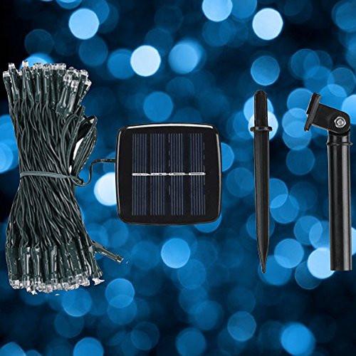 DeVida Blue and Cool White Solar Christmas & Hanukkah String Lights Outdoor Decorations Gifts - 100 Mini LED Color Set For Sukkah Table, Tree, Yard, Patio, Home Exterior, Jewish Holiday Decor