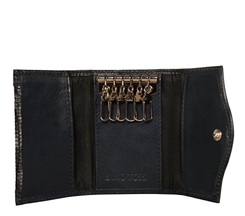-. Title : SILVIO TOSSI - Swiss Label Damen Schlüsseletui Grau & Schwarz Kalbsleder
