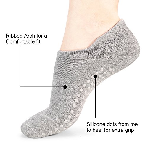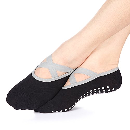 -. Feature : High Quanlity Pilates Socks: 85% combed cotton,12% nylon,3% spandex.Non slip yoga socks with cotton absorbs sweat,keep feet dry and help protect feet against exposure to foot fungus. / High Elasticity Socks: Women's grip socks fits women shoe sizes 5-10.Package includes 2 pair of sticky socks. / Non-Slip Grain Design: Non Slip grip extends fully from heel to toe.Pure barre socks offer better grip for improved stability & balance so that you can stay safe,avoid injuries and have better body movements control,even protect your feet without a mat. / Wear Them Anywhere: Perfect grip sock for you to practice yoga,pilates,barre,ballet dance while traveling,working at the studio,or at home.Hospitals utilize these ballet barre socks because the grips on the bottom provide their patients fall prevention safety and everyone wears them for their comfort,warmth and security. / 100% SATISFACTION GUARANTEE:If you're not satisfied with non slip socks,60 days free replacement or issue a full refund.Please do not hesitate to contact us in the first time if there is any problem.