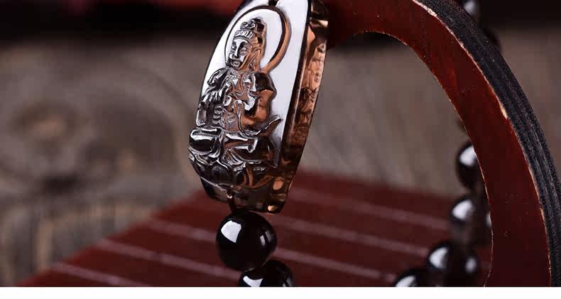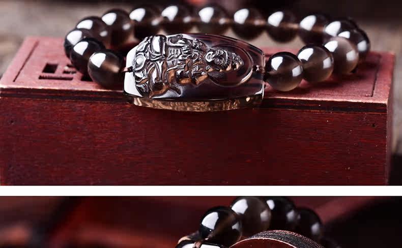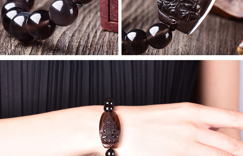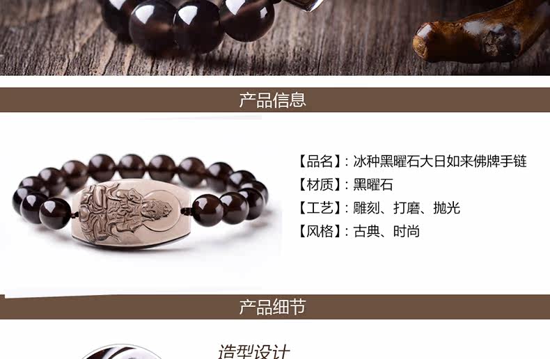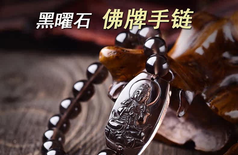 开光天然黑曜石大日如来菩萨手链本命年生肖羊猴守护神手串