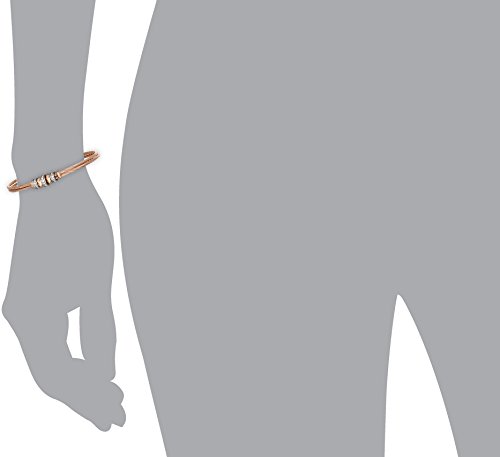 • Stainless steel bracelet in rose gold tone featuring doubled cable wire and textured two-tone rondels with clear rhinestones