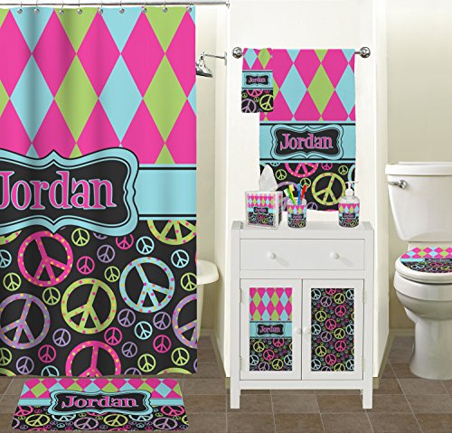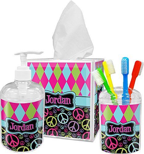 -. Brand : RNK Shops -. Color : Multi -. Feature : YOU WILL RECEIVE AN EMAIL WITH A LINK TO CUSTOMIZE YOUR ORDER WITHIN 1 BUSINESS DAY / Custom P.R.Inted with Your Design / 3 piece set / Inserts P.R.Inted on premium gloss media / Vibrant, colorful design -. Label : Mom Innovations -. Manufacturer : Mom Innovations -. MPN : mi-bath-acc-bundle+198344 -. PartNumber : mi-bath-acc-bundle+198344 -. ProductGroup : Home -. ProductTypeName : HOME_BED_AND_BATH -. Publisher : Mom Innovations -. Studio : Mom Innovations -. Title : Harlequin & Peace Signs Bathroom Accessories Set (Personalized)