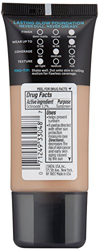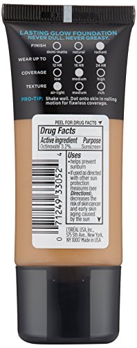 -. Binding : Health and Beauty -. Brand : L'Oreal Paris -. Label : L'Oreal Paris Cosmetics -. Manufacturer : L'Oreal Paris Cosmetics -. ProductGroup : Beauty -. ProductTypeName : BEAUTY -. Publisher : L'Oreal Paris Cosmetics -. Studio : L'Oreal Paris Cosmetics -. Title : L'Oreal Paris Cosmetics Infallible Face Pro-Glow Foundation