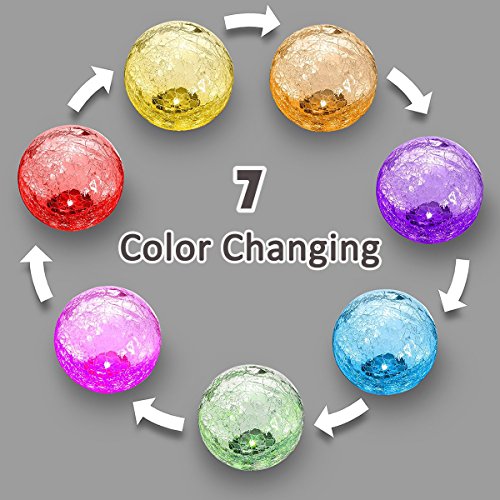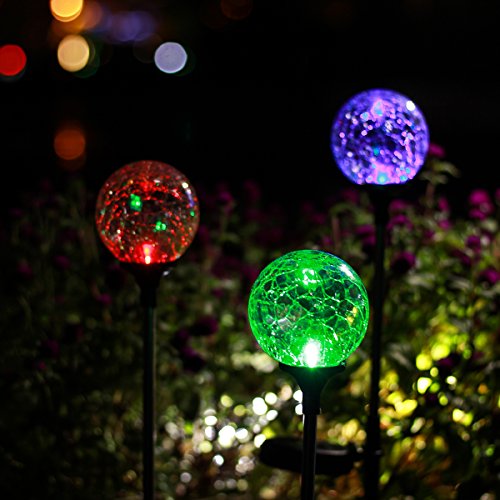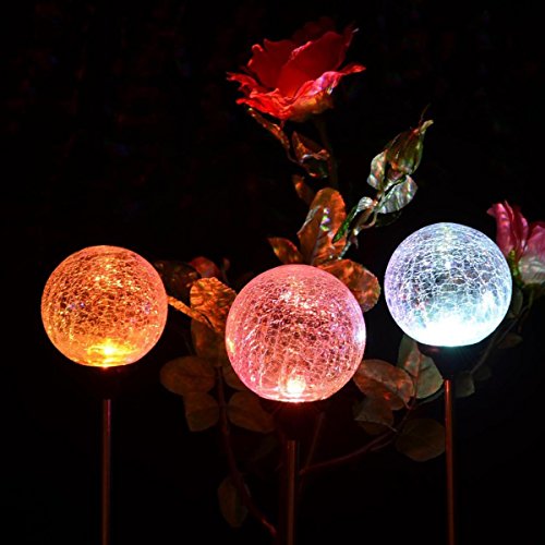 COLOR CHANGING LIGHTS. Cracked glass stake light with 7 color-changing. Perfect as path lights and in-ground lights Suitable for the Garden, Trees, Flowers, Flowerbed, Fence, Walkway, this solar garden lights Does it all.