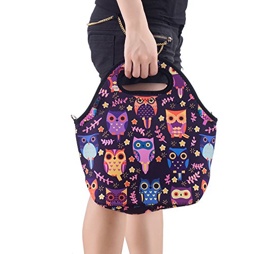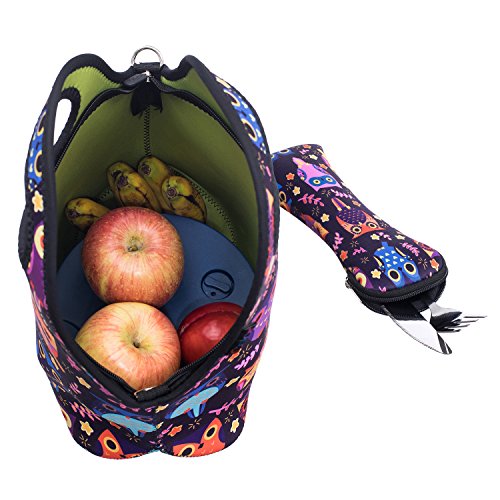 Featuring gorgeously bold images on both sides and a durable think 4.5mm neoprene material that keeps food at the perfect temperature, our iColor lunch box is easy to store, easier to clean and really lets you represent your style. It's ideal for school lunches, work snacks, shopping, or even as a baby bag; whatever you choose, you can carry it with your hand,in the arm,cross body,or over your shoulder.it's machine washable, folds up for easy storage and still maintains its beautiful colors even after hundreds of uses. With a wide bottom, a zip-top opening, and room for food, snacks and a small ice pack, there's no better bag to get you through the day!