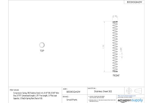 Compression Spring, 302 Stainless Steel, Inch, 0.18" OD, 0.018" Wire Size, 0.12" Compressed Length, 0.25" Free Length, 1.47 lbs Load Capacity, 11.25 lbs/in Spring Rate (Pack of 10)