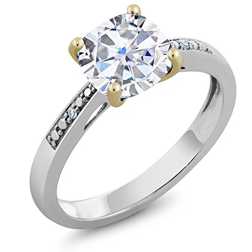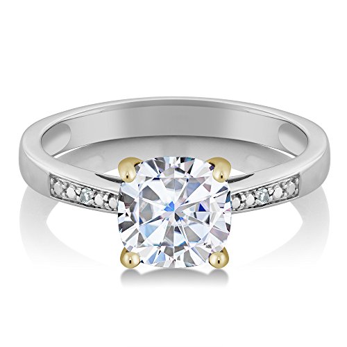 -. Title : 10K Two-Tone Gold Engagement Ring With Diamond Accent And Cushion White Created Moissanite (1.51 cttw, Available in size 5,6,7,8,9)