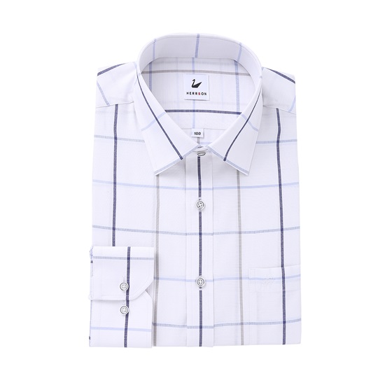 -혼방소재의 빅체크무늬의 일반핏셔츠.