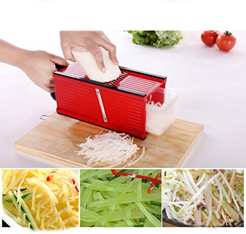 Multi-function: You buy 1 SUMCOO vegetable mandoline slicer, which means you get 1 fruit and cheese cutter, 1 carrot grater, 1 onion chopper and 1 julienne peeler.