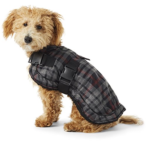 -. Feature : 100% Polyester/Faux Sherpa Lining / Designed in Canada / Harness/leash keyhole for easy accessiblility / Adjustable buckle closure / Machine wash cold, gentle