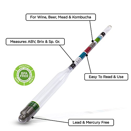 - ALL YOU NEED TO BREW BY THE NUMBERS: Make sure your alcohol, sugar and gravity measurements are right in the sweet spot with this combo kit -- whether your forte is beer, wine, mead or Kombucha. Our glass hydrometer and 250ml plastic test jar help you guard against errors that could ruin your product. Once your numbers look right, you’re ready to tinker with the recipe until you’ve got it tasting terrific every single time.
