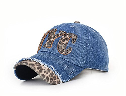 Title : Superhappy Lady Leopard Denim Adjustable Cap (Dark Blue)