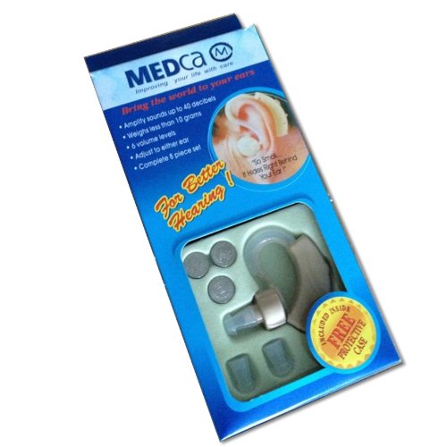 -. Binding : Health and Beauty -. Brand : MEDca -. EAN : 0045635623071 -. Feature : Super mini size and light weight, not easily to be seen / adjustable volume with 6 volume levels / High quality protective and traveling case / adjust to either ear / Choose an earplug of slightly bigger size to avoid whistler -. IsAdultProduct : 0 -. Label : Medca -. Manufacturer : Medca -. MPN : M56 -. NumberOfItems : 1 -. PackageQuantity : 1 -. PartNumber : M56 -. ProductGroup : Health and Beauty -. ProductTypeName : PERSONAL_CARE_APPLIANCE -. Publisher : Medca -. Studio : Medca -. Title : Behind the Ear Sound Amplifier Super Mini Size Sound Enhancer -. UPC : 045635623071