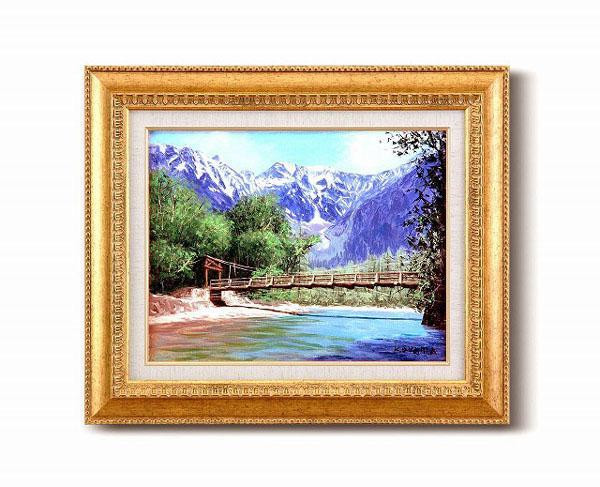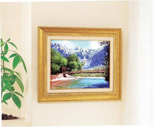 美しい上高地の自然をリアルに描いています。贅沢感ある金のフレームにセットしました。