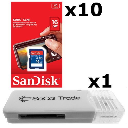 -. Title : 10 PACK - SanDisk 16GB SD HC Class 4 Secure Digital High Speed SDHC Flash Memory Card SDSDB-016G 16G 16 GB GIGS (S.B16.RTx10.562) LOT OF 10 with USB SoCal Trade© SCT SD Memory Card Reader - Retail Packaging