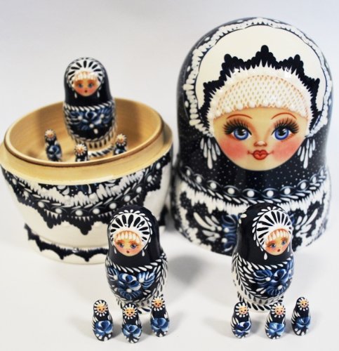 -. Title : Unique Rare Russian Hand Painted Handmade Blue Nesting Dolls Set of 13 Pcs Artist Signed