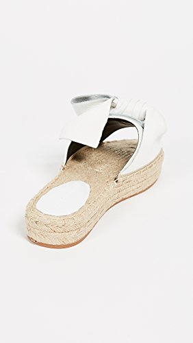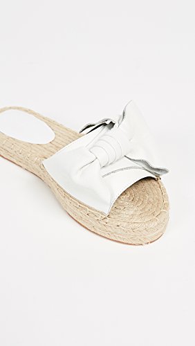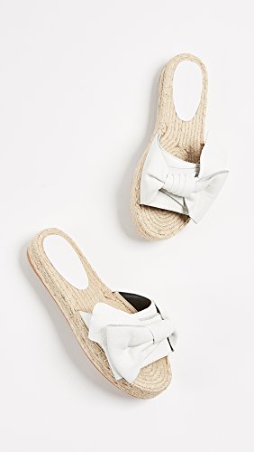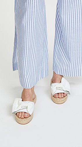 Product DescriptionA staple pair of Rebecca Minkoff slide sandals get an extra dose of feminine charm with a chic white leather knot and an espadrille-style, ever-so-slight platform lift.0