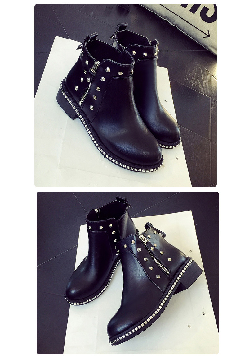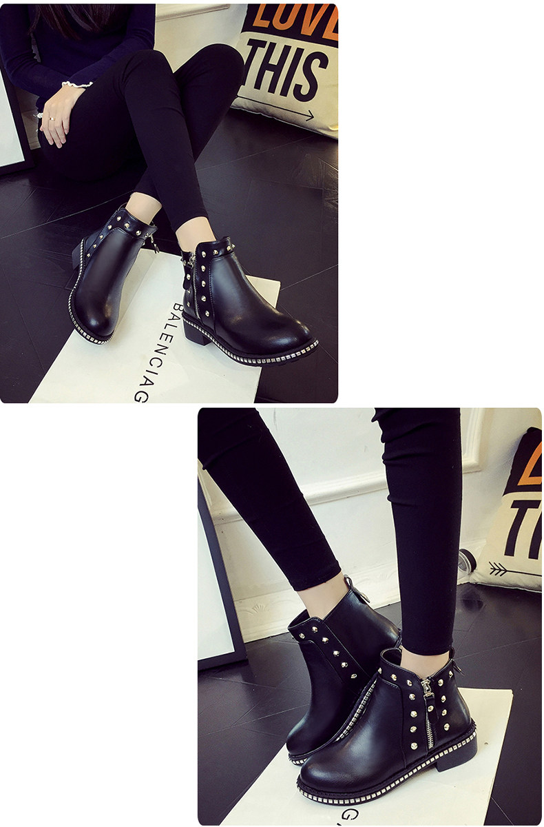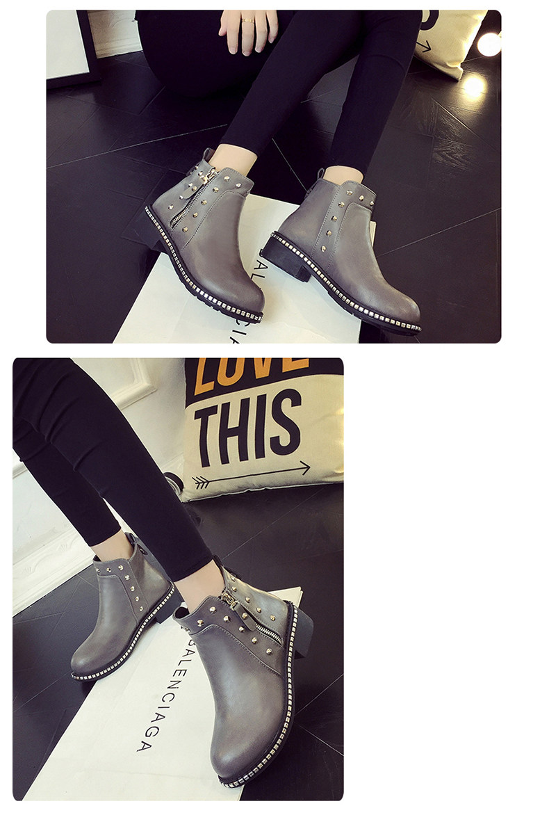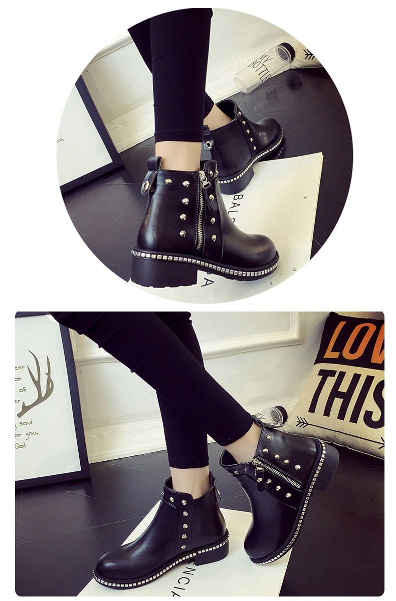 英伦风马丁靴女秋冬季新款粗跟休闲鞋裸靴及踝靴百搭女鞋子