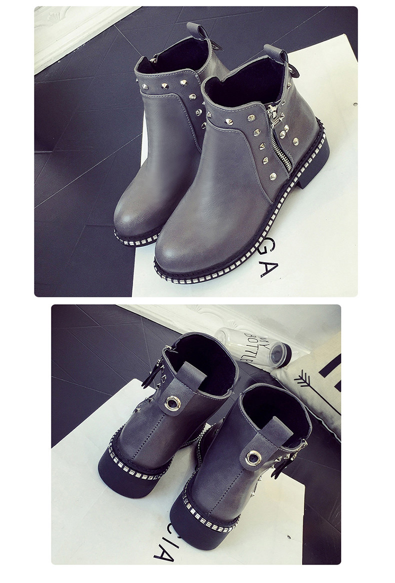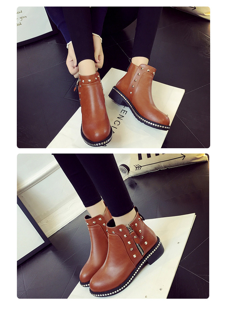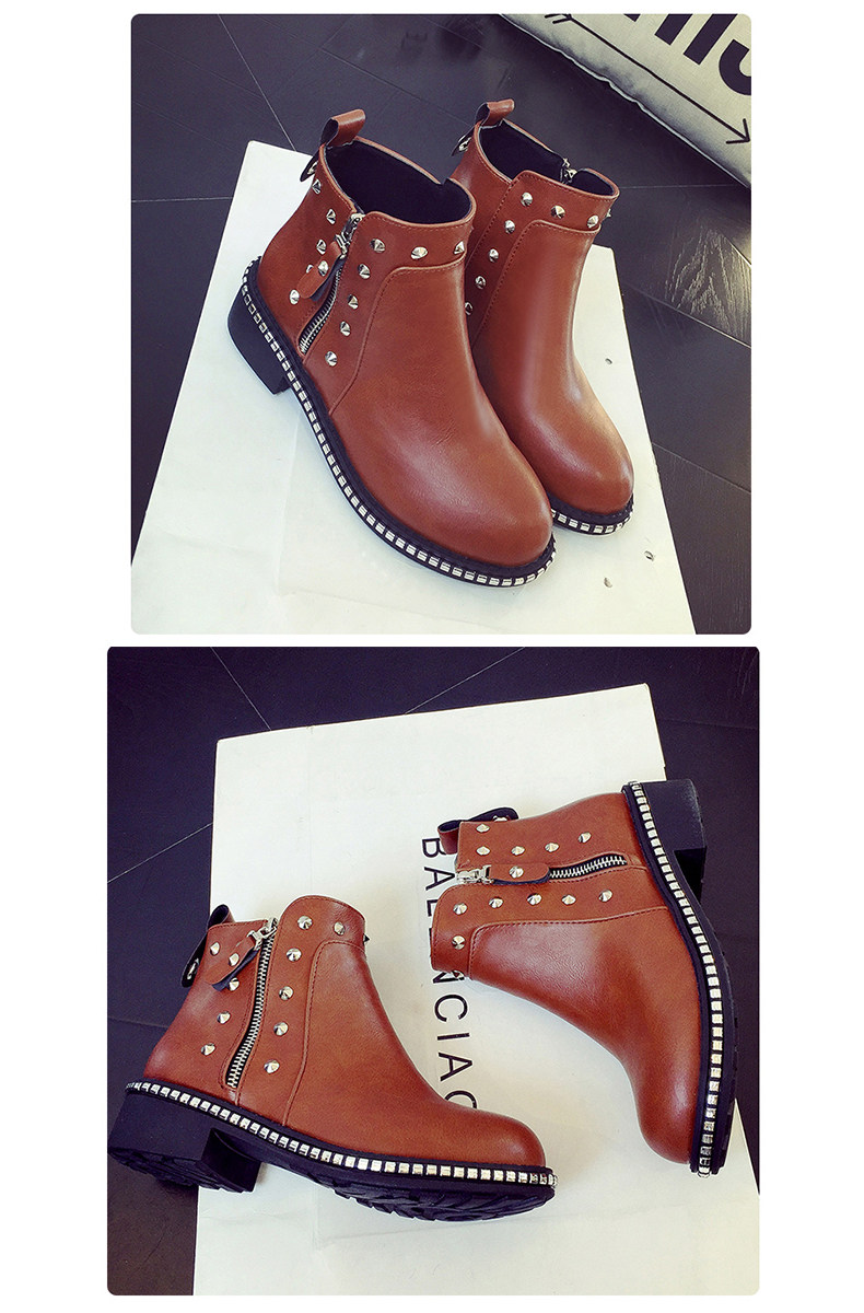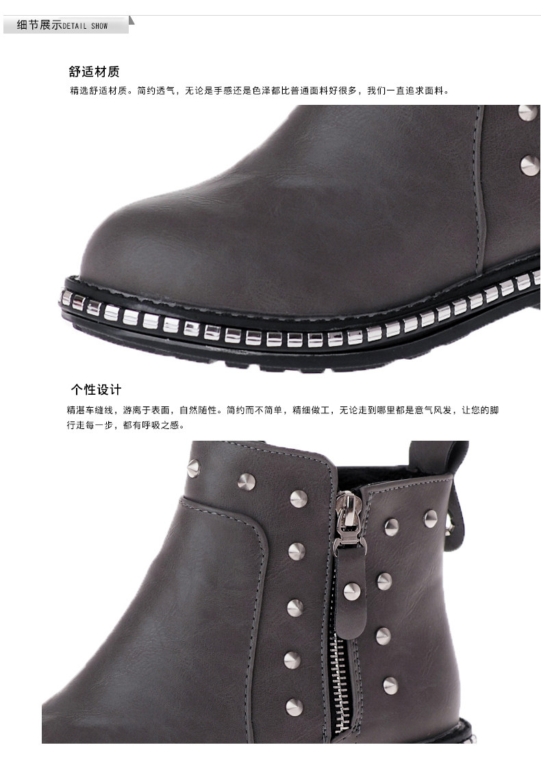 英伦风马丁靴女秋冬季新款粗跟休闲鞋裸靴及踝靴百搭女鞋子