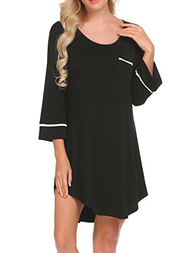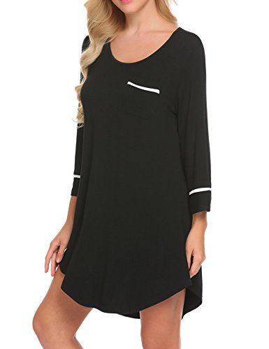 -. Feature : Super comfortable fabric: 95% Rayon+ 5% Spandex, Made of soft and elastic fabric,which is great for sleepwear or lougewear / This Soft Modal Sleepshirt Borrows From the Boyfriend Style night dress with scoop neck, 3/4 Sleeve and Long Sleeve Two Choice, Loose style, Chest pocket / Extremely Soft, breathable and lightweight, no stimulative to the skin / Designed for all seasons, capable to serve as loungewear, sleepwear and leisure wear, also ideal for pajama party, family dinner party and other casual occasions / Wash Instruction: Hand wash with cold water. Do not bleach. Flat Dry