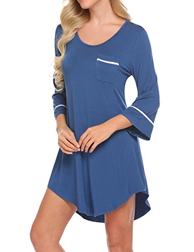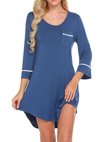 -. Title : Acecor Womens Nightshirt 3/4 Sleeves Loose Pockets Boyfriend Sleepshirt S-XXL