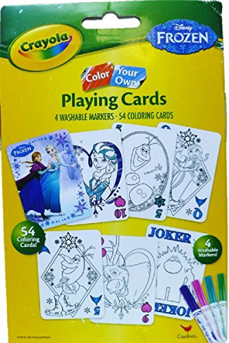 - Feature : Color your own deck of FROZEN Character playing cards / Includes 54 coloring cards, 4 Crayola washable markers, & tin holder / Fun to color, fun to play