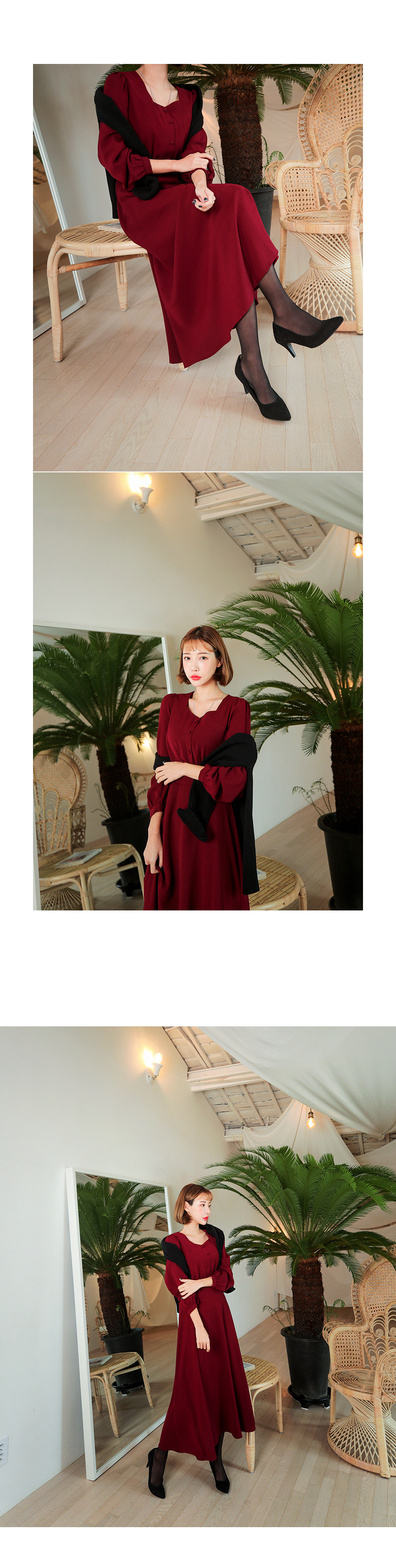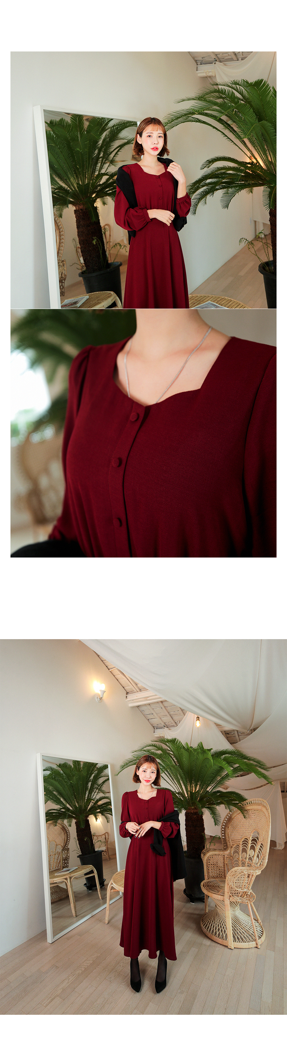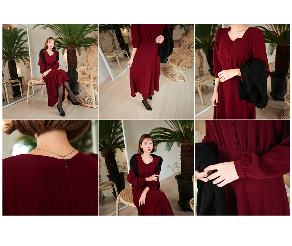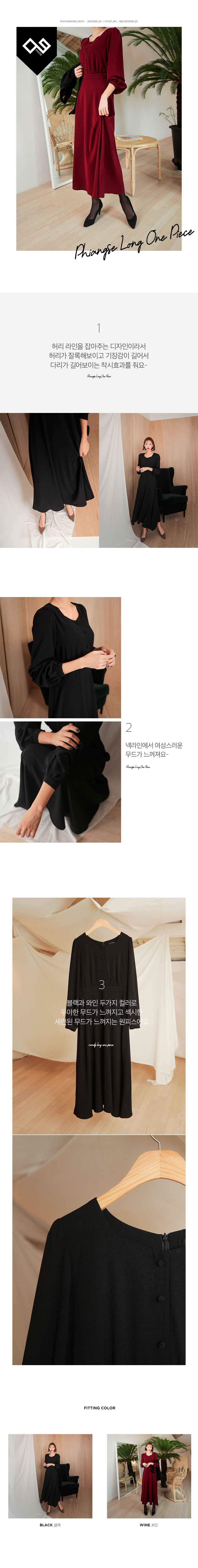 고급진 분위기를 연출해주는 롱 원피스를 소개할게용!^0^ 넥라인에서 여성스러운 무드가 느껴지고, 플레어 밑단이 여성스러움을 한층 더 업그레이드 시켜줘요! 허리 라인을 잡아주는 디자인이라서 허리가 잘록해보이고, 기장감이 길어서 다리가 길어보이는 착시효과를 보여주는 원피스예요! 뒤에는 지퍼가 있기 때문에 입고 벗기도 편해요! 컬러는 블랙과 와인 두 가지 컬러로! 와인은 우아한 무드가 느껴지고! 블랙은 섹시하고 세련된 무드가 느껴지는 다른 느낌의 두 가지 컬러감으로 원하시는 컬러 골라입기 딱 ! 좋을거에요!