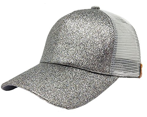 -. Title : Halemet Glitter Trucker Messy High Bun Ponytail Mesh Sun Hat Unisex Baseball Cap