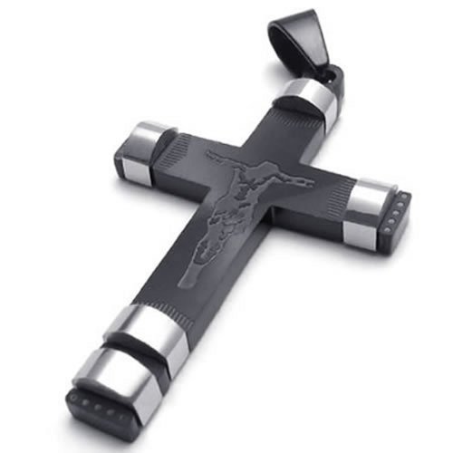 -. Title : KONOV Stainless Steel Jesus Crucifix Cross Mens Necklace Pendant, Black, 24 inch Chain