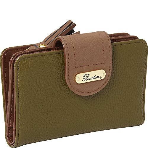 -. Title : Buxton Touch of Suede Medium Tab Wallet, Four Leaf Clover/Coconut