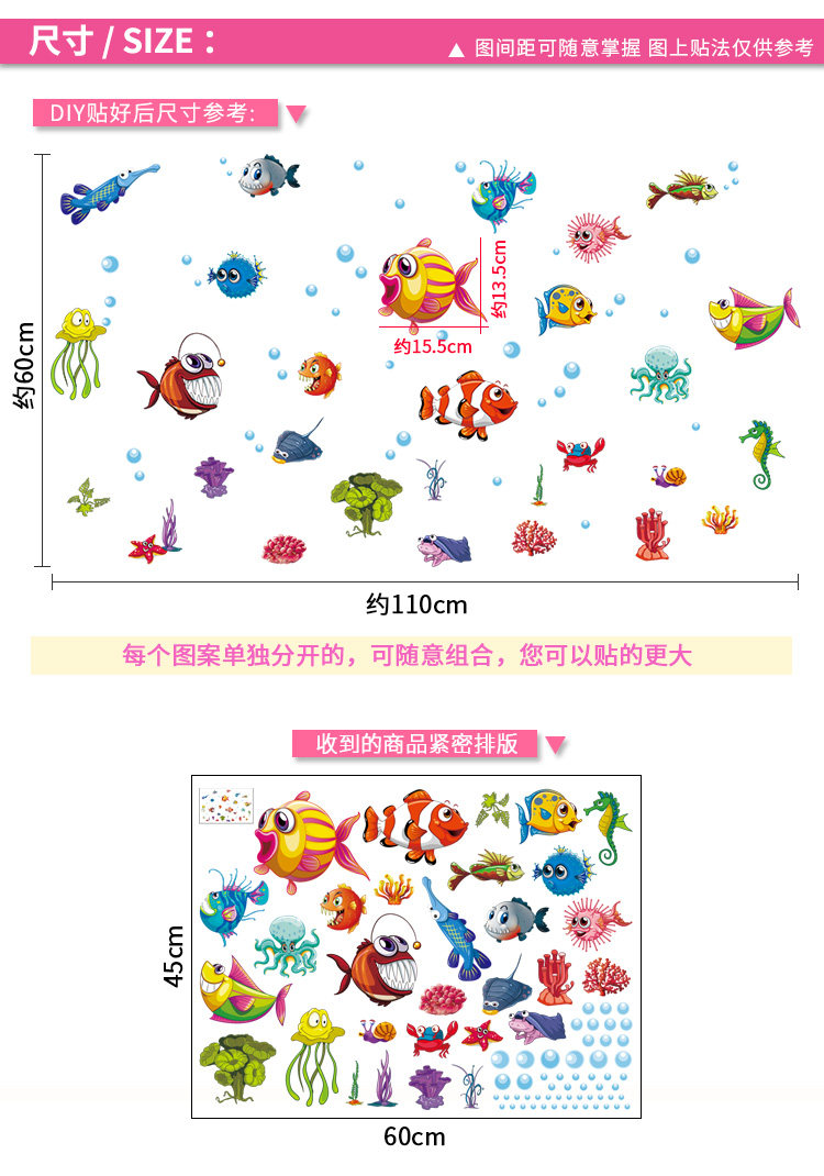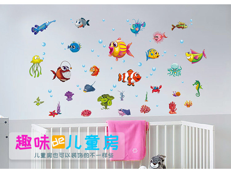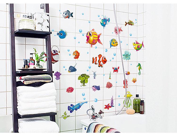 卫生间淋浴室墙壁瓷砖玻璃贴纸防水装饰贴画儿童房卡通海洋鱼墙贴