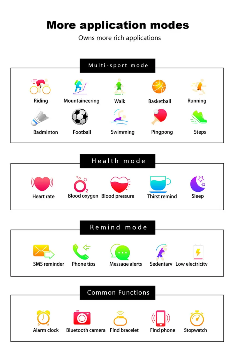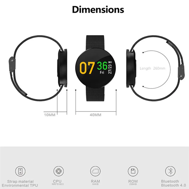 Function:Passometer,Sleep Tracker,Calendar,Dial Call,Push Message,Heart Rate Tracker,Alarm Clock,Fitness Tracker,Answer Call,Message Reminder,Call Reminder