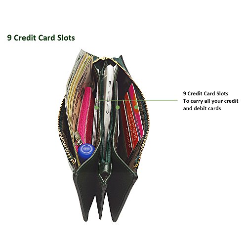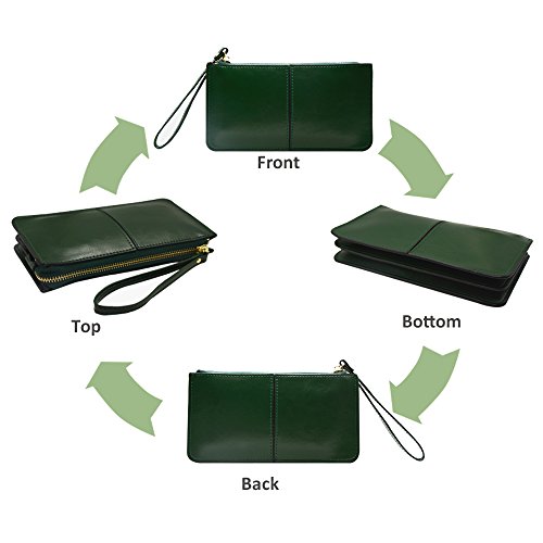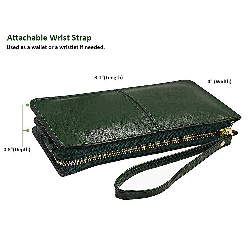 Belfen® [Soft leather] [Dark green] Smartphone zipper wallet organizer with Credit Card Holder/Cash pocket/Wristlet- [Up to 6 x 3.1*0.5 Inch Cellphone]