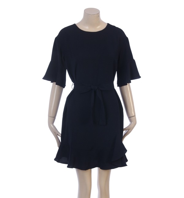 리본 벨트로 포인트를주었으며 잘록한 허리라인을 잡아주는 세련스러운 디자인입니다
